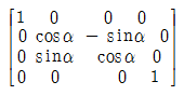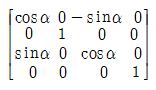 3차원 변환에서 Y축을 중심으로 a의 각도만큼 회전한 경우의 변환행렬(T)은? (단, 변환식은 P′=PT이고, P′는 회전 후 좌표, P는 회전하기 전 좌표이다.)