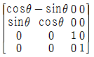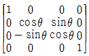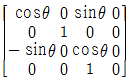 3차원 공간에서 y축을 중심으로 ϴ만큼 회전했을 때의 변환행렬(4×4)로 옳은 것은? (단, 변환행렬식은 다음과 같다.)(오류 신고가 접수된 문제입니다. 반드시 정답과 해설을 확인하시기 바랍니다.)