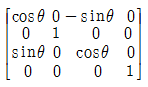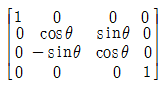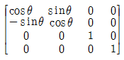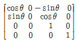 3차원 변환에서 Z축을 기준으로 다음의 변환식에 따라 P점은 P'으로 임의의 각도(θ)만큼 변환할 때 변환 행렬식(T)으로 옳은 것은? (단, 반시계 방향으로 회전한 각을 양(+)의 각으로 한다.)