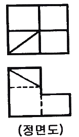 아래 그림은 제3각법으로 투상한 정면도와 평면도를 나타낸 것이다. 여기에 가장 적합한 우측면도는?