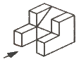 그림과 같은 입체도를 화살표 방향에서 본 투상 도면으로 가장 적합한 것은?