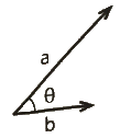 다음 그림에서 벡터 a의 크기가 5, 벡터 b의 크기가 3이고 θ=30° 라면 이 두 벡터의 내적은 얼마인가?