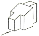 그림과 같은 등각투상도에서 화살표 방향이 정면일 경우 3각법으로 투상한 평면도로 가장 적합한 것은?