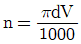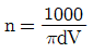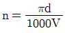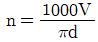 드릴의 속도가 V(m/min), 지름이 d(mm)일 때, 드릴의 회전수 n(rpm)을 구하는 식은?