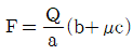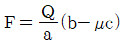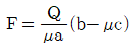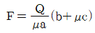 그림과 같은 블록 브레이크에서 막대 끝에 작용하는 조작력 F와 브레이크의 제동력 Q와의 관계식은? (단, 드럼은 반시계방향 회전을 하고 마찰계수는 μ이다.)