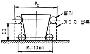 그림에서 플러그 게이지의 기울기가 0.05일 때. M2의 길이 [mm]는? (단, 그림의 치수단위는 mm이다.)