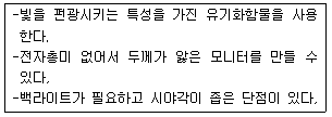 다음과 같은 특징을 가진 디스플레이는?