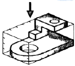 그림과 같은 입체도에서 화살표 방향 투상도로 가장 적함한 것은?