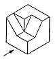 다음과 같은 3각법으로 그린 투상도의 입체도로 가장 옳은 것은? (단, 화살표 방향이 정면이다.)