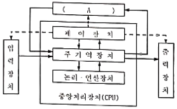 다음은 컴퓨터를 구성하는 장치의 5대 요소에 의한 기본적인 정보처리과정을 나타낸 것이다. ( A )안에 들어갈 것으로 옳은것은?