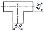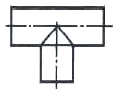 지름이 같은 원기둥이 그림과 같이 직교할 때의 상관선의 표현으로 가장 적합한 것은?