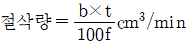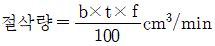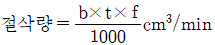 밀링머신에서 절삭할 때 칩(chip)의 체적을 구하는 식으로 옳은 것은? (단, 절삭폭:b(mm), 절삭 깊이:t(mm), 피드:f(mm)이다.)