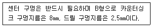 센터 구멍의 간략 도시 방법에서 다음 설명을 옳게 도시한 것은?