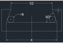 그림과 같이 더브데일 홈 가공을 하려고 할 때 X의 값은 약 얼마인가?(단, tan60° =1.7321 , tan30° = 0.5774 이다)