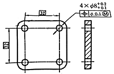 다음과 같이 상호 관련된 구멍 4개의 치수 및 위치 허용 공차에 대한 설명으로 틀린 것은?