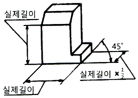 그림과 같이 하나의 그림으로 정육면체의 세 면 중의 한 면 만을 중점적으로 엄밀·정확하게 표현하는 것으로, 캐비닛도가 이에 해당하는 투상법은?