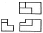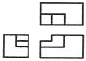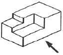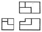 제3각 정투상법으로 아래 입체도의 정면도, 평면도, 좌측면도를 가장 적합하게 나타낸 것은?