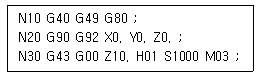 다음 머시닝센터 프로그램에서 N10블록의 G80에 대한 설명중 옳은 것은?