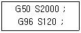 다음 프로그램에서 공작물의 지름이 50mm일 때 주축의 회전수는 약 몇 rpm인가?