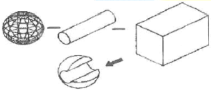 형상모델링에서 아래 그림과 같이 구에서 원통과 직육면체를 빼냄(subtraction)으로써 원하는 형상을 모델링하는 방법은?