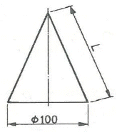 그림과 같은 원뿔을 전개하엿을 때 전개도의 중심각이 120°가 되려면 L의 치수는 얼마인가? (단, 원뿔 밑면의 지름은 100mm 이다.)