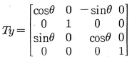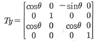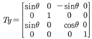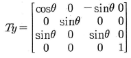 CAD/CAM 시스템에서 3차원에서 이미 구성된 도형자료를 다음 그림과 같이 y축을 기준으로 회전 변환시킬 때의 변환행렬식(Ty)으로 옳은 것은?