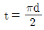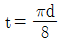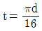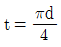 1줄 겹치기 리벳 이음에서 피치는 리벳 지름의 3배이고, 리벳의 전단력과 강판의 인장력이 같을 때, 강판 두께(t)와 리벳지름(d)과의 관계는?(단, 강판에서 발생하는 인장응력은 리벳에서 발생하는 전단응력의 2배이다.)