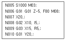 다음 CNC 밀링 프로그램에서 오류가 발생되는 블록은?