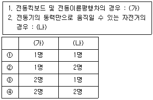 <보기>는 「도로교통법 시행규칙」상 개인형 이동장치의 승차정원에 대한 내용이다. (가)와 (나)에 들어갈 내용으로 가장 옳은 것은?