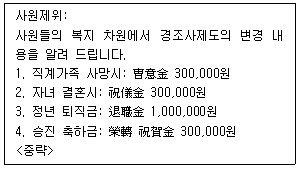 다음 회사의 경조사제도 관련 공지문에서 한자가 잘못 표기된 번호는?