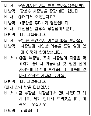 다음의 내방객 응대 업무 수행 중 가장 부적절한 것은?