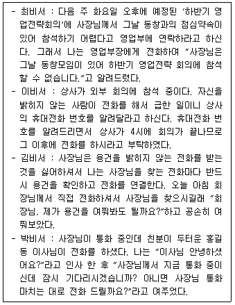 다음 중 상황별 비서의 전화업무 처리로 가장 바람직한 경우는?