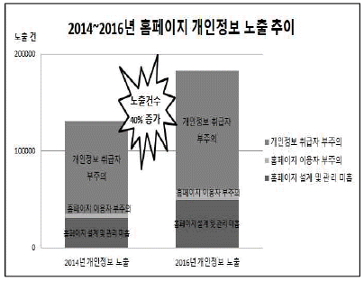 개인정보 노출현황을 분석한 차트이다. 이 차트를 통해 알 수 있는 내용과 가장 거리가 먼 것은?