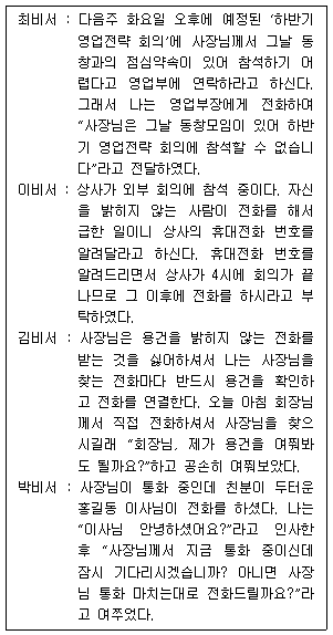 다음 중 상황별 비서의 전화업무 처리로 가장 바람직한 경우는?