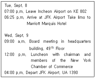 Read the following Mr. Kim's itinerary and choose one which is NOT true.