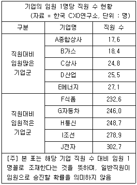 다음은 기업 임원의 비중에 관한 표이다. 이에 대한 설명으로 가장 올바른 것은?