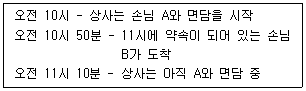 현재 시각은 11시 10분이다. 다음 상황에서 비서의 내방객 응대자세로 가장 적절한 것은?