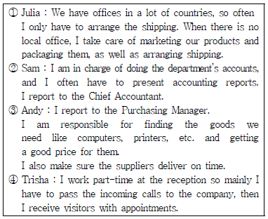 다음은 네 명이 각각 자신의 직업을 묘사하는 인터뷰 내용이다. 보기 중 가장 잘못 연결된 것을 고르시오.