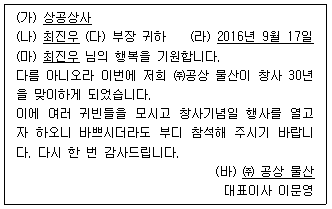 다음 문서 중 메일머지를 이용하여 작성하지 않아도 될 부분을 모두 고르시오.