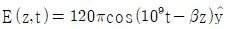 유전율이 ε = 2ε0이고 투자율이 μ0인 비도전성 유전체에서 전자파의 전계의 세기가