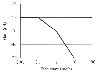그림과 같은 보드선도의 이득선도를 갖는 제어시스템의 전달함수는?(문제 오류로 가답안 발표시 2번으로 발표되었지만 확정답안 발표시 모두 정답처리 되었습니다. 여기서는 가답안인 2번을 누르면 정답 처리 됩니다.)