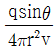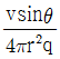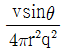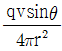 q(C)의 전하가 진공 중에서 v(m/s)의 속도로 운동하고 있을 때, 이 운동방향과 θ의 각으로 r(m) 떨어진 점의 자계의 세기(AT/m)는?
