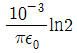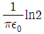 진공 중에서 무한장 직선도체에 선전하밀도 ρL=2π × 10-3C/m가 균일하게 분포된 경우 직선도체에서 2m와 4m떨어진 두 점사이의 전위차는 몇 V 인가?