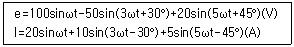 다음과 같은 비정현파 기전력 및 전류에 의한 평균전력을 구하면 몇 W 인가?