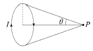 원형 선전류 I(A)의 중심축상 점 P의 자위(A)를 나타내는 식은? (단, θ는 점 P에서 원형전류를 바라보는 평면각이다.)