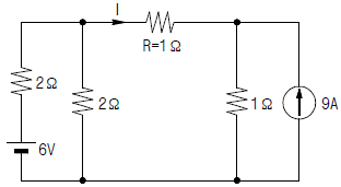 회로에서 저항 R에 흐르는 전류 I(A)는?