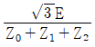 3상 무부하 발전기의 1선 지락 고장 시에 흐르는 지락 전류는? (단, E는 접지된 상의 무부하 기전력이고, Z0, Z1, Z2는 발전기의 영상, 정상, 역상 임피던스이다.)