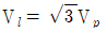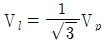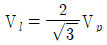 대칭 6상 성형(star)결선에서 선간전압 크기와 상전압 크기의 관계로 옳은 것은? (단, Vl : 선간전압 크기, Vp : 상전압 크기)