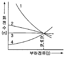 그림은 여러 직류전동기의 속도 특성곡선을 나타낸 것이다. 1부터 4까지 차례로 옳은 것은?