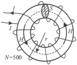 평균 반지름(r)이 20cm, 단면적(S)이 6cm2인 환상 철심에서 권선수(N)가 500회인 코일에 흐르는 전류(I)가 4A일 때 철심 내부에서의 자계의 세기(H)는 약 몇 AT/m인가?